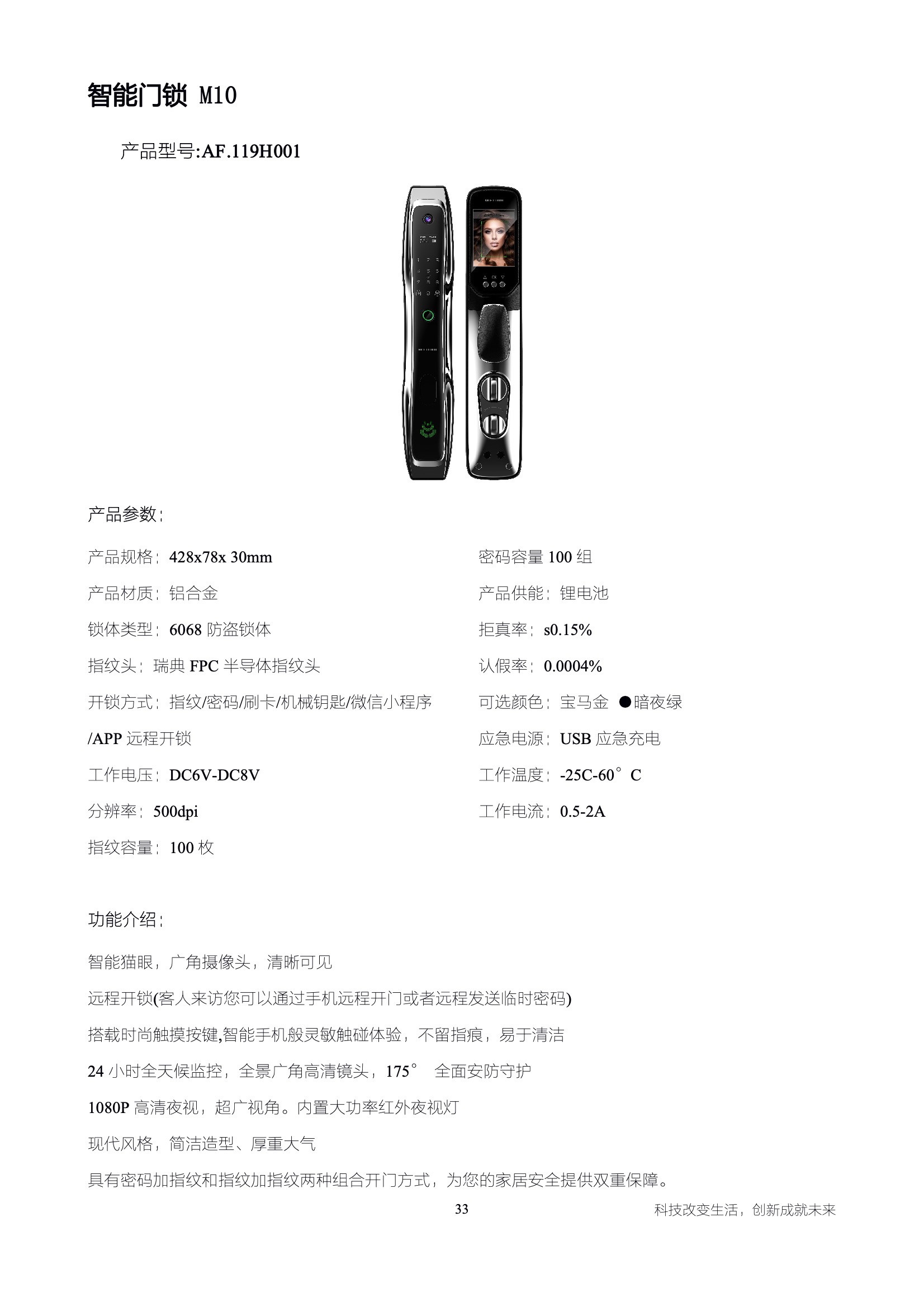 室內高清大屏 M10貓眼智能鎖